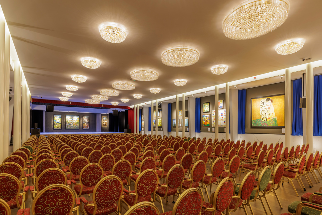 from the area can perform, while also serving as a corporate events and conference venue. As befits its previous role as a house of worship, the space has lively acoustics that are beautiful for vocals but present challenges for amplified sound. Hotel rooms are situated close above and adjacent to the theater space.